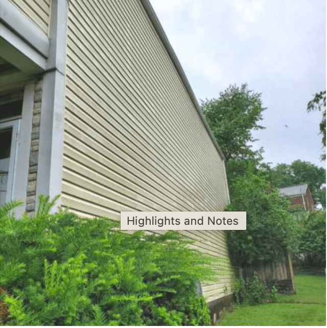 The siding is a pale yellow vinyl…so not the most attractive look. On the other hand, it isn’t in terrible condition. Painting rather than replacing the siding may be the best option.